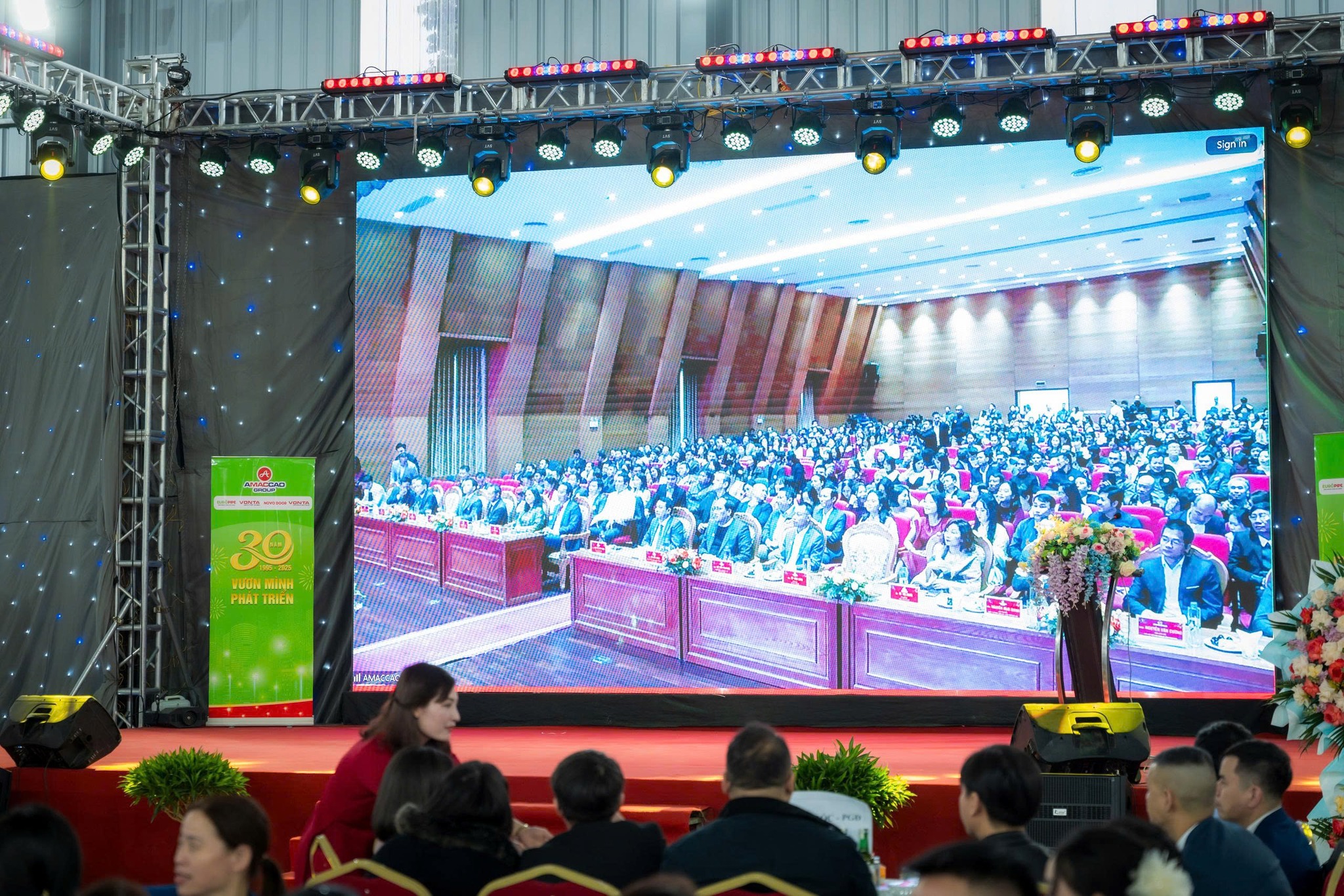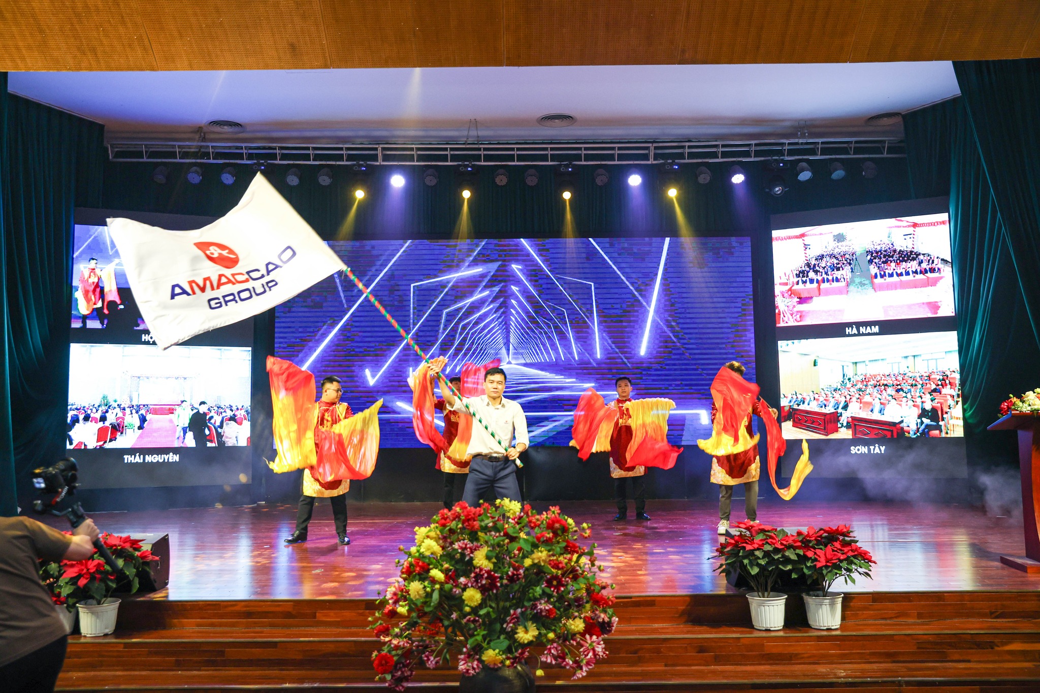 The AMACCAO Group 2025 Review and 2026 Orientation Program was held simultaneously at the main hub in Hanoi and connected online with 16 other locations nationwide, including operating factories and projects. Nearly 7,000 employees across the entire system participated in a unified timeframe, creating a comprehensive picture of the scale, cohesion, and shared spirit of the AMACCAO family.